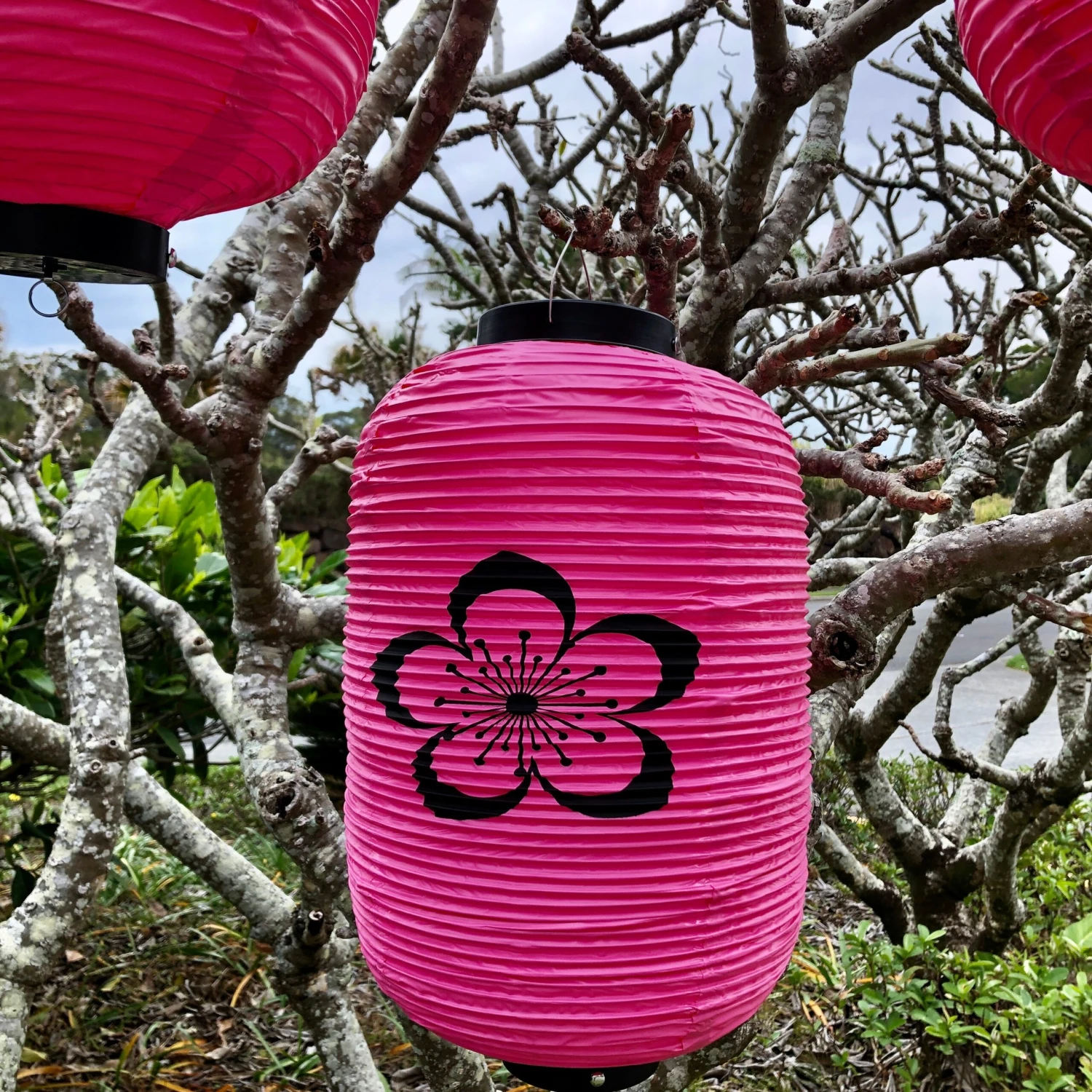 CLEARANCE SALE, END OF STOCK – SAVE OVER 50% Pink Sakura Blossom Japanese Lantern. Custom-design and print exclusive to Lanternshop. Beautiful Japanese style vinyl lantern with sakura flower print. (Japanese sakura print on front and back of lantern). Big discount on pink lanterns (end of pink stock)