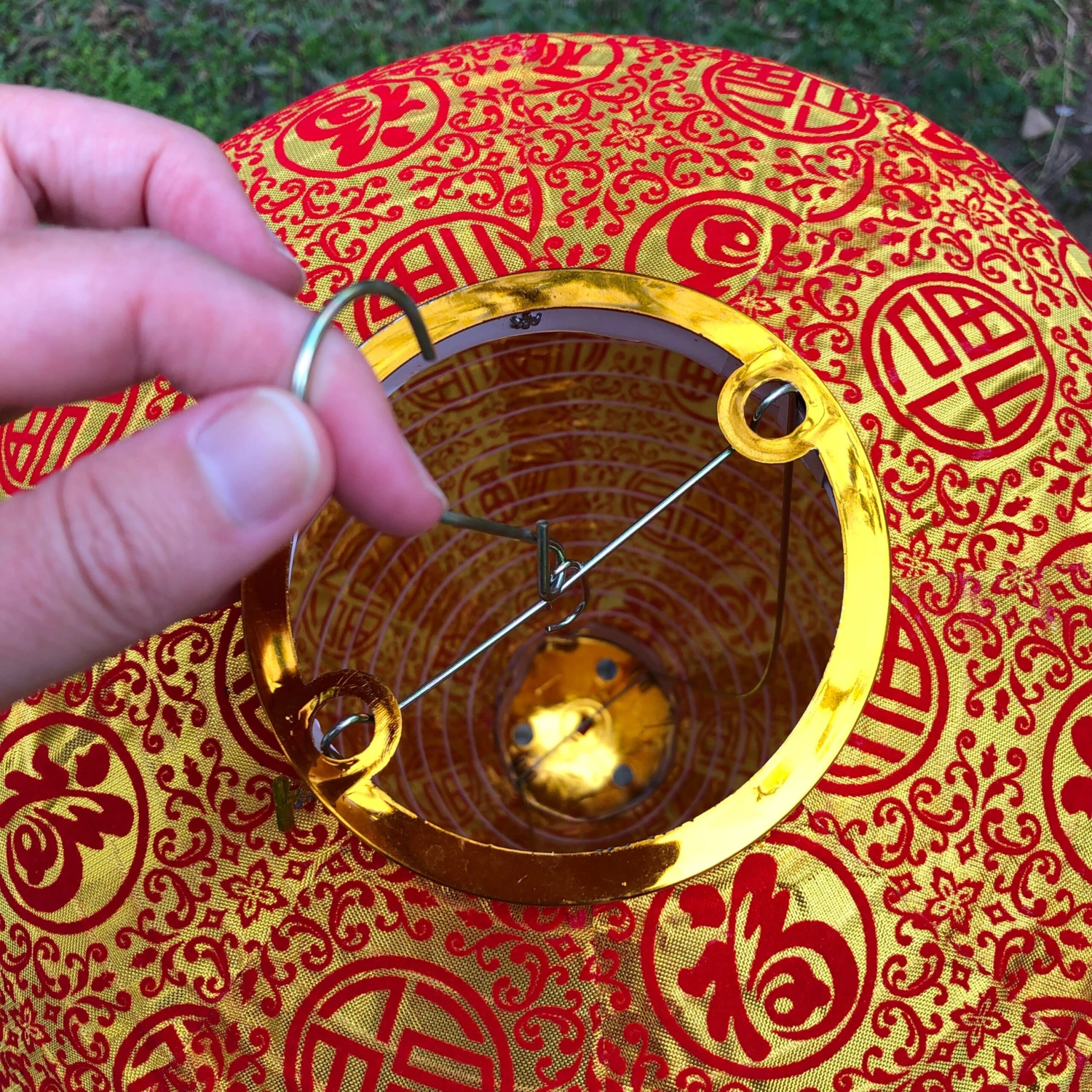 Celebrate in style with these luxurious Chinese lanterns – vibrant gold silk with red velvet Chinese characters and flower decorations. Stunning lanterns for any occasion including lunar new year! Shaped lanterns with decorative red fringe and tail, gold trims and lacquered timber bauble above tail. Chinese characters for happiness and prosperity.