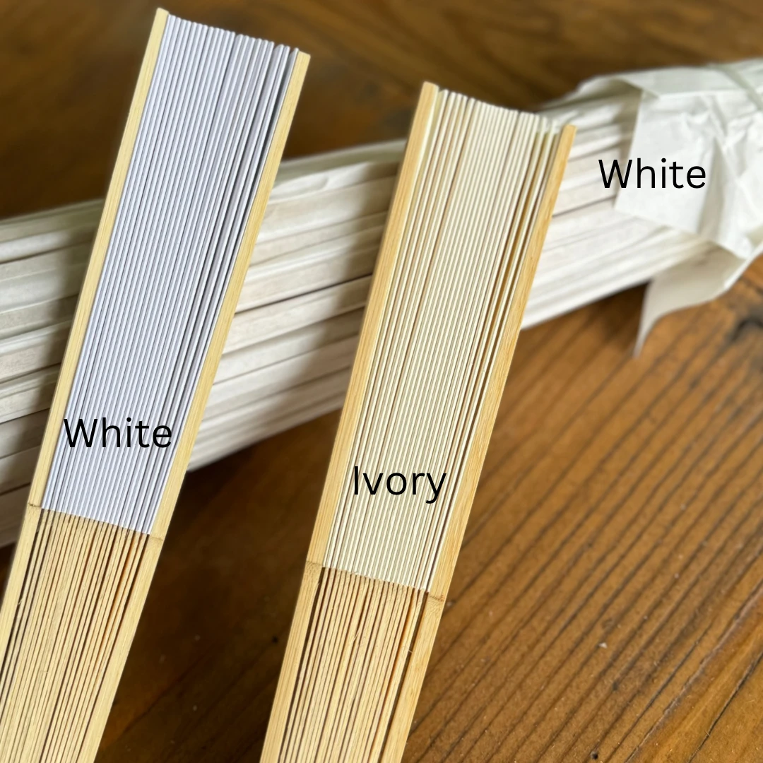 (see images showing both white and ivory fans together with white paper parasols so you can choose the best colour combination for your event)