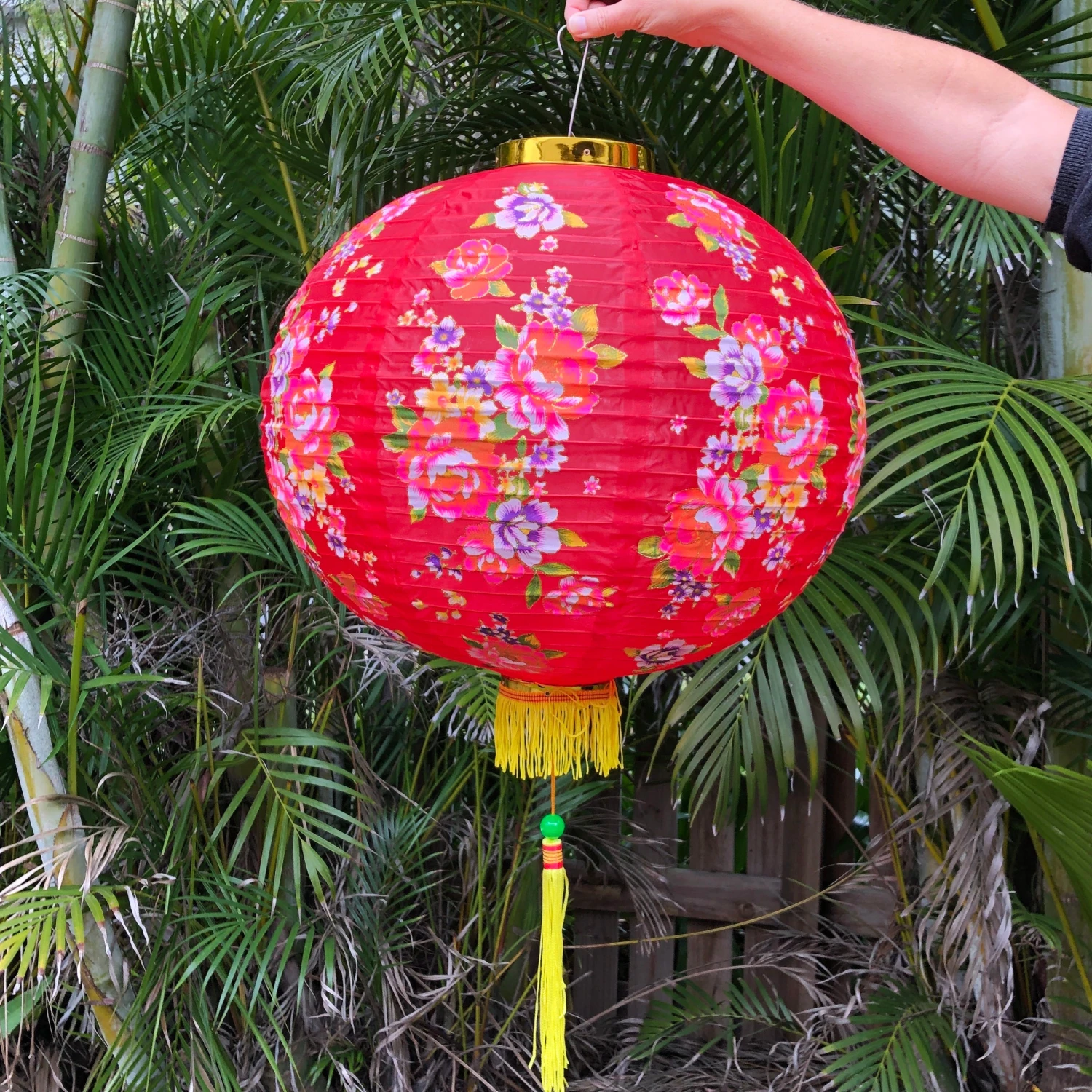EXTRA LARGE SIZE (50cm diametre) lanterns for big events! Beautiful, vibrant coloured nylon fabric with pretty flowers in bright colours. Popular lanterns for mid-Autumn festival, lunar new year, corporate events and parties.